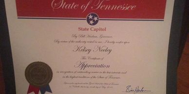 Recognition of Director of Student Outreach, Kelsey Neeley, for her dedication to reducing teen suicide in Tennessee.